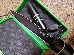 I purchased this flashlight knife set as a gift for my husband who loves any tools for camping and fishing. The knife if surprisingly sharp and the light is very bright and is adjustable as far as brightness and width of light. It comes with rechargeable batteries and a battery charger! Cant get any better than this! My husband has been using the flashlight a lot in the house lately cause he is installing our security cameras and wiring it all through the attic. He really likes the flashlight cause it is so bright. It has strobe functions also. This was a great gift and useful tool.