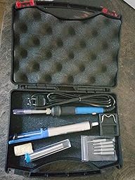 I bought this for my husband, he really likes this product and so do I. The soldering kit came in a very nice case that latches securely and is filled with foam as pictured to hold everything securely. It comes with everything you could possibly want. It contains several heads for the iron for different project needs. It comes with the spiral wiring in a tube and an auto ejector for the wire so you dont have to pull it out manually. This iron gets super hot and the temp is adjustable. My husband turned it up to 450 degrees and the tip glowed red after just a few moments and he was able to use it just fine, after he finished he was able to sit the iron on an included perch to keep that hot tip from touching anything else. It can be placed there while cooling or while working with it when you need a free hand.