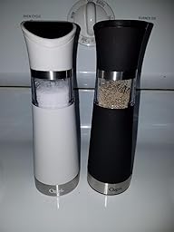 These are battery operated salt and pepper grinders. They came with the necessary batteries. They are tall and work excellently. They also look very nice. They grind salt and pepper to fine granules and output is really good so don't overdue it. These seem quality made and not too fragile. I would buy again.