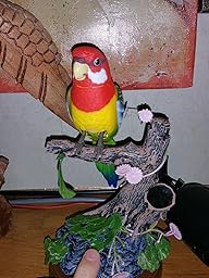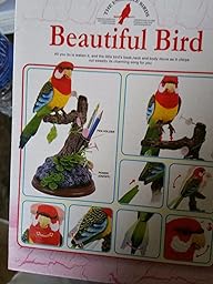 This is nice, I was hoping for the blue and white bird but got a red and green one instead, I don't know if I was supposed to get that. It takes 3 AA batteries that do not come with it. It was easy to put together and works just as stated. It is a recording of some bird sounds and a babbling brook that plays. It has a button at the base that will turn it on and make it respond to motion and noise or turn it off so it will stay quiet. It is very sensitive to noise and vibrations. i was standing in the kitchen and it is sitting on our fireplace mantel and dropped something on the floor and it went off. The birds movements are fast, almost too fast, but its movements are also complex, its tail goes up and down, it flaps its wings and moves its head back and forth and its mouth opens and closes. The detail on this is very good and it is really pretty. My five year old really enjoys it and our living room is full of bird decor, so we love it too.