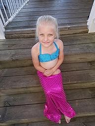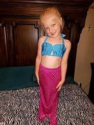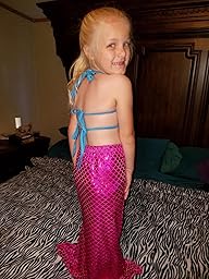 I ordered this a size down for it to fit my baby girl. She wears a 5t and I ordered 3/4t, the fit was good! This little swimsuit is just adorable! My daughter loves it and so do I. She ran all around the house and didn't take it off for hours.The top is cut very cute like sea shells and the ties can be tied different ways for a better fit which I like very much. The little bottoms are super cute with a bow in back and frills on the sides. The mermaid skirt really brings it all together. The material is stretchy and is not see through. The waist stays in place also. The stitching is high quality and the cut is just as expected it should be. I love this suit!